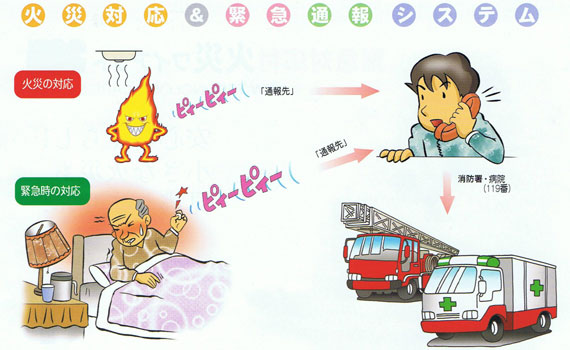 在宅中の高齢者、病気の方に緊急事態が発生したとき、家族、介護ヘルパーなどに連絡をとることができます。 |