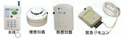 サイレン付フラッシュライト・緊急用リモコン・火災センサー |